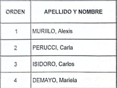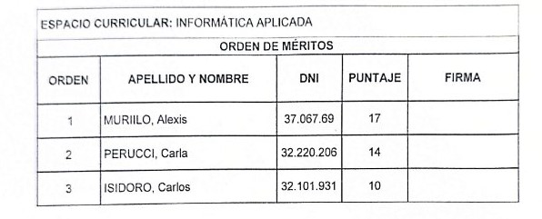 Orden de Méritos correspondiente al llamado a concurso para la cobertura de horas cátedra de ISET 820.